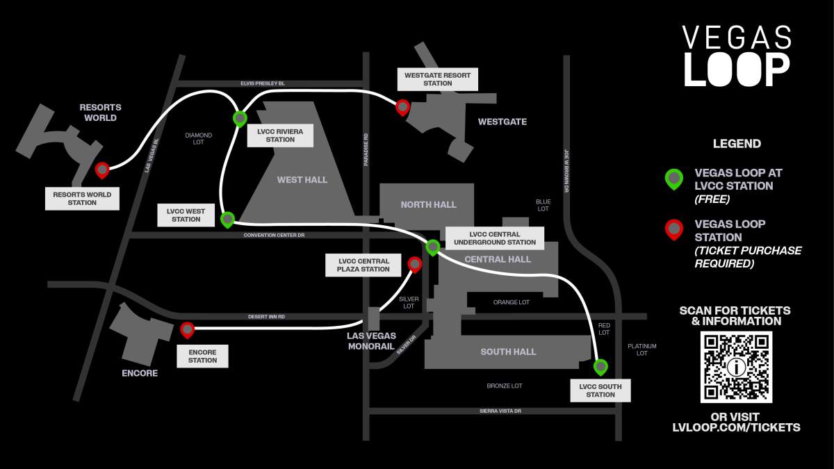 The Vegas Loop, a high-speed underground public transportation system built to accommodate all-electric Tesla vehicles, provides direct access from The Resorts World & Westgate Passenger Stations to Convention Center stations (South, Central, West and Riviera Stations). A valid Vegas Loop Ticket will be required for any rides arriving from or departing to Resorts World, Westgate, Encore and any station outside of the Convention Center Campus, all rides within the convention center campus are free! Click here to purchase Loop tickets.